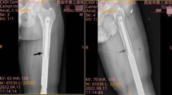(箭頭標(biāo)記處為“瓦片”配件X線片,嚴(yán)絲合縫固定)