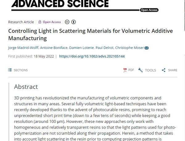 關(guān)于該文獻(xiàn)的更多信息,請(qǐng)移步Jorge Madrid- Wolff等人。控制用于體積增材制造的散射材料中的光。(點(diǎn)我傳送門(mén))