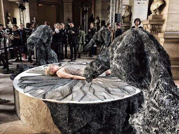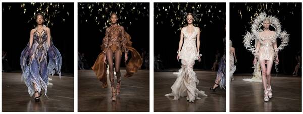 △在巴黎時(shí)裝周上,范赫本采用3D打印技術(shù)設(shè)計(jì)的高級(jí)定制服裝
