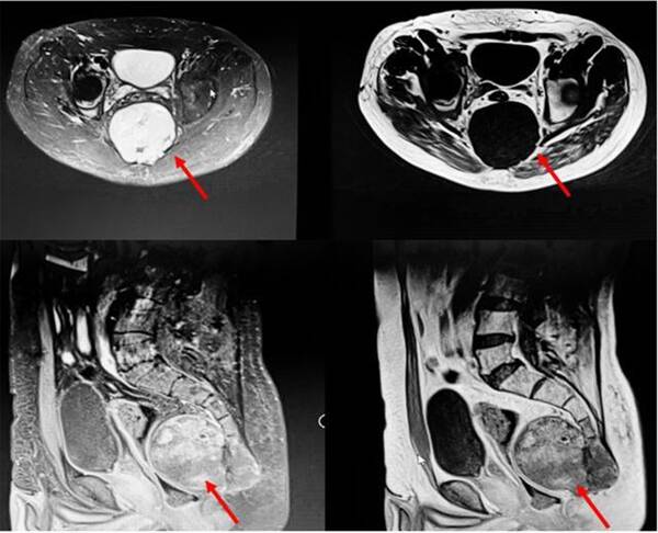 王先生從4年前就開始出現(xiàn)腰部疼痛,在當(dāng)?shù)囟嗉裔t(yī)院多次就診,均被告知腰椎間盤突出。試過多種治療,疼痛一直未有明顯改善,并且病情逐漸加重。最近出現(xiàn)會陰部疼痛、排便困難,便于近日慕名來到煙臺山醫(yī)院骨病與骨腫瘤科就診,門診醫(yī)師完善相關(guān)檢查后告知王先生考慮骶骨脊索瘤的可能性較大,建議入院先行穿刺活檢,明確腫瘤性質(zhì)。住院后,經(jīng)穿刺后病理明確為脊索瘤。