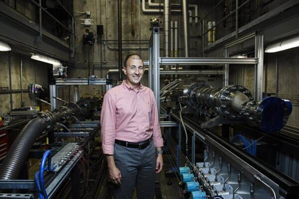 Carson Slabaugh副教授在普渡大學Zucrow實驗室燃燒試驗臺前