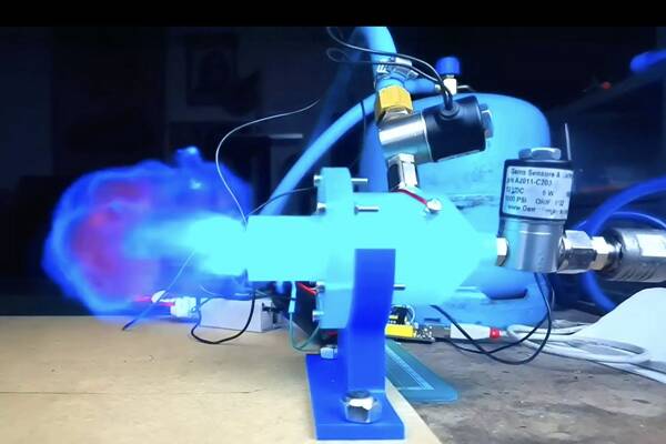 利用這套打印系統(tǒng)和Siraya Tech樹(shù)脂,Integza最初3D打印了一個(gè)燃燒室,連接到一個(gè)長(zhǎng)的丙烯酸管以及空氣和燃料閥門(mén)。他表示,通過(guò)Arduino控制器可以操作高壓發(fā)生器被點(diǎn)燃,但并不確定這種設(shè)置是否會(huì)產(chǎn)生爆震。因此,為了給他的發(fā)動(dòng)機(jī)提供更多動(dòng)力,Integza采用了向其注入純氧的方法。