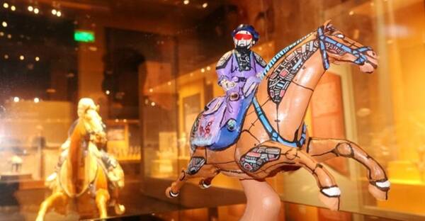 古人在社會(huì)生活中遺留下來(lái)的古老印記和那些流淌著歲月的文物如何重新活躍于當(dāng)下,被今天的年輕人所感知和喜愛(ài)?近日,在西安博物院,一件“新文物”鎖住了觀眾的視線,這是一尊用3D技術(shù)掃描并打印的鎮(zhèn)館之寶——唐三彩騰空胡人騎馬俑,由于結(jié)合當(dāng)下流行的賽博朋克風(fēng)格對(duì)文物進(jìn)行了二度創(chuàng)作,最終呈現(xiàn)出的是一匹“炫酷機(jī)械風(fēng)三彩騰空馬”。