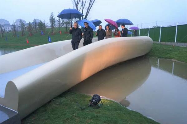 去年,成都驛馬河城市公園內(nèi)的“流云橋”,也由上海建工打造,這是運(yùn)用3D打印技術(shù)完成的最大跨度的高分子材料景觀橋,主體部分長(zhǎng)21.58米、寬8米、高2.68米,凈重12噸,整體拼裝完成后含引橋總長(zhǎng)達(dá)66.8米,創(chuàng)新采用“分段打印、預(yù)制拼裝工藝”,延綿悠長(zhǎng)的空間意境,已經(jīng)成為了網(wǎng)紅打卡地。