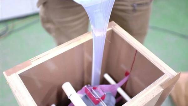 5、固化后,在硅膠模具上做一個(gè)切口,取出原型;