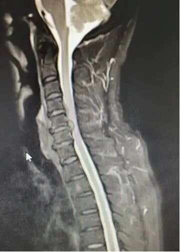 患者陳XX,男,51歲,患者自述于8月前無明顯誘因出現(xiàn)頸部疼痛,勞累后疼痛加重,曾實施“針灸、拔罐”等治療,癥狀有所緩解,期間仍間斷感到疼痛,未予特殊處理,期間上述癥狀加重并出現(xiàn)四肢麻木、不適,以右手食指、中指,左手五指,右下肢膝關(guān)節(jié)以下,左下肢足底為主,并伴左下肢乏力?;颊邽榍筮M一步治療,慕名至湘雅常德醫(yī)院就診,門診以“脊髓型頸椎病”收入脊柱外科。
