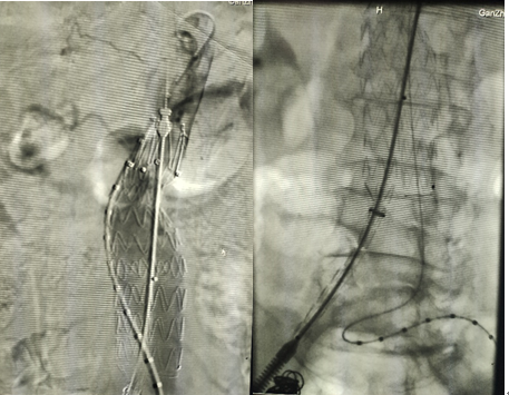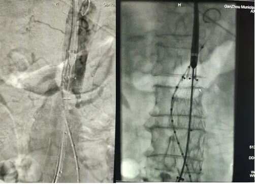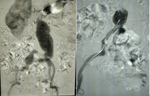 患者女,68歲,因發(fā)現(xiàn)腹主動(dòng)脈瘤入院。輔助檢查:腹主動(dòng)脈CTA診斷為腹主動(dòng)脈瘤并瘤內(nèi)血栓形成,雙側(cè)髂總動(dòng)脈瘤,雙腎動(dòng)脈起始處狹窄,左腎結(jié)石伴重度積水。