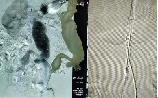 10、在3D打印血管的輔助下完成腹主動(dòng)脈瘤的覆膜支架腔內(nèi)隔絕術(shù),最后造影結(jié)果