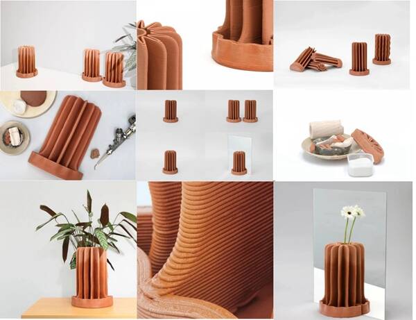 用于 3D 打印粘土的主要成分是回收陶瓷粉末,比例為 1:3。它不僅能夠塑造加濕器的曲線形狀,而且還可以提高吸水率,這對于這個設備來說是一個重要的事情。此外,在加濕器的生命周期結(jié)束后,還可以將其用作回收熟料來制作其他 3D 粘土打印產(chǎn)品。這使得產(chǎn)品真正可持續(xù),從你如何創(chuàng)造它,你用什么來創(chuàng)造它,以及你如何處置它都形成一個完整的生命周期。