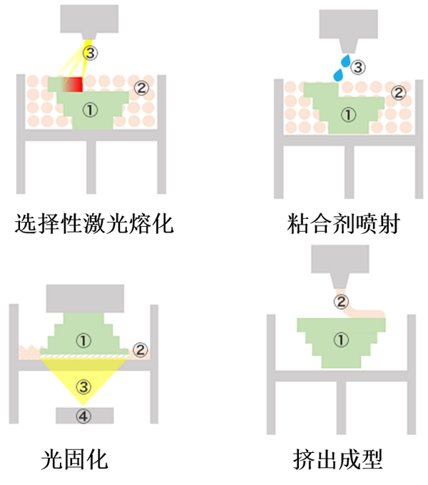 ●擠出成型技術:從噴嘴擠出加熱熔化的陶瓷粉末材料并堆積成型。