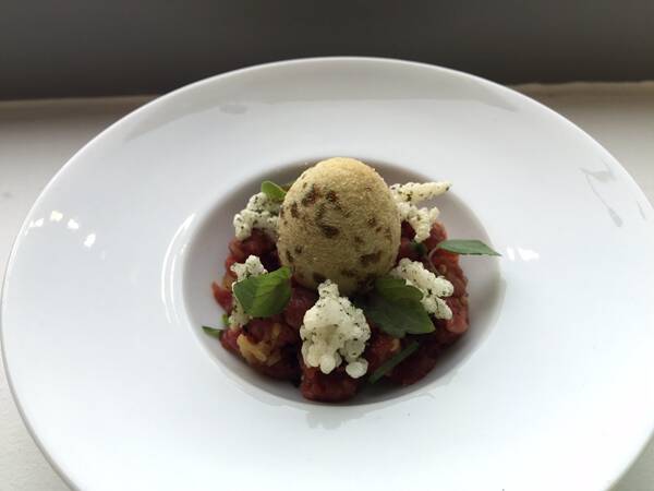 △由主廚梅琳制作的 3D 打印芥末蛋。圖片由 3D Systems 和梅林提供