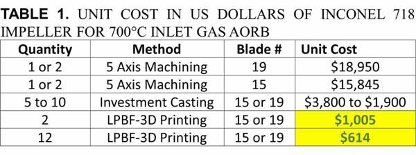 Jose Luis Cordova說:"我們傳統(tǒng)的、用減法制造的葉輪每件高達15,00019,000美元。當(dāng)我們用3D打印技術(shù),以8個左右的小批量,而不是一次一個,這就降到了500600美元,這是一個非常顯著的成本降低。除了削減制造成本外,LPBF是能夠為我們提供我們所尋找的設(shè)計靈活性的一項技術(shù)。增材制造不受葉輪葉片的數(shù)量、角度或間距的限制,而所有這些都對空氣動力學(xué)效率有直接影響。我們現(xiàn)在擁有所需的幾何精度,既能實現(xiàn)更高性能的旋轉(zhuǎn)渦輪機械設(shè)計,又能降低相關(guān)的制造成本。"