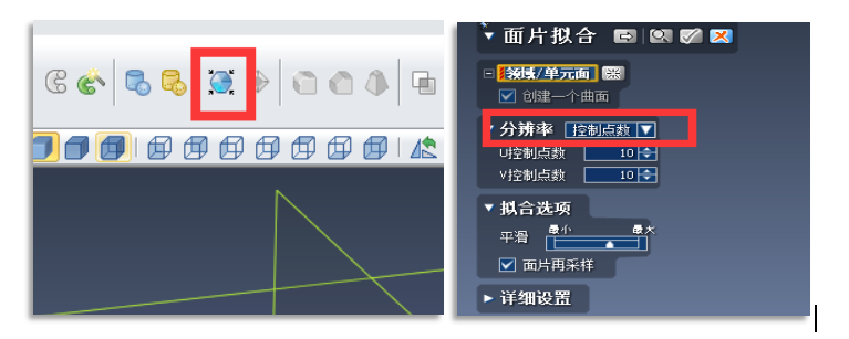點(diǎn)擊面片擬合后自動(dòng)彈出一個(gè)面片擬合操作框如圖,根據(jù)需求可以選擇分別率為控制點(diǎn)數(shù)或許可偏差。面片擬合DX軟件里面比較核心的一個(gè)命令,根據(jù)之前劃分好的領(lǐng)域組,直接對一部分領(lǐng)域進(jìn)行擬合,形成需要的片體。