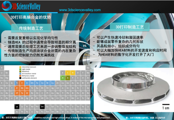 自從大約 20 年前首次開發(fā) HEA 以來,HEA 一直是研究的熱門領(lǐng)域,但直到最近才出現(xiàn)在極端測試中將材料推向極限所需的技術(shù)。根據(jù)3D科學(xué)谷《(一)3D打印技術(shù)的優(yōu)缺點(diǎn) l 3D打印HEA高熵合金:微觀結(jié)構(gòu)和性能綜述》一文,高熵合金 (HEAs) 是一種很有前途的多組分合金,具有新穎的微觀結(jié)構(gòu)和優(yōu)異的性能的獨(dú)特組合。然而,通過傳統(tǒng)方法制造 HEA 仍然存在一定的局限性。3D打印-增材制造的 HEA 具有優(yōu)化的微觀結(jié)構(gòu)和改進(jìn)的性能,近年來增材制造 (AM) 技術(shù)在生產(chǎn) HEA 中的應(yīng)用呈顯著增長趨勢。