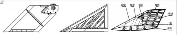 舵翼類產(chǎn)品是航天飛行器穩(wěn)定控制系統(tǒng)的執(zhí)行機(jī)構(gòu),實(shí)現(xiàn)飛行器穩(wěn)定飛行及機(jī)動(dòng)的重要部件。其結(jié)構(gòu)輕量化程度不僅影響飛行器機(jī)動(dòng)性和響應(yīng)速率,還對(duì)舵機(jī)系統(tǒng)輸出功率有重要影響。舵翼類產(chǎn)品隨著制造工藝技術(shù)的不斷進(jìn)步,從最初的實(shí)心板式舵翼到目前主流的骨架蒙皮式翼舵,如圖2所示,其輕量化水平逐漸提高。