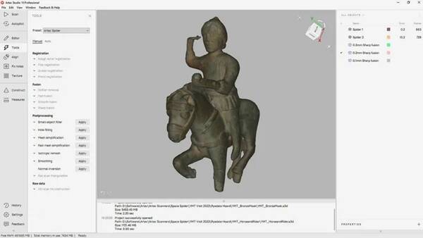 △Artec Studio軟件中處理Space Spider掃描的馬背上的馬爾斯雕像
