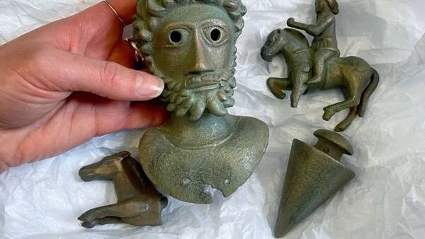 這座半身像是他們今天的第二個發(fā)現(xiàn)。之后他們又繼續(xù)在該地區(qū)進行搜索。當他們結(jié)束搜索后,除了半身像,還發(fā)現(xiàn)了另外三件文物:一個鉛錘,一個羅馬神馬爾斯的雕像,以及一個馬形刀柄。
