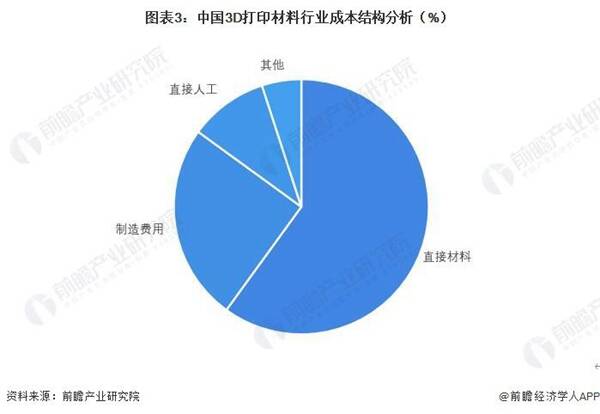 結合 3D 打印金屬和非金屬材料的代表性企業(yè)的成本結構來看,直接材料的占比依據(jù)企業(yè)的材料業(yè)務初加工需求而有所不同,區(qū)間在 50%-70%;制造費用為企業(yè)的第二大成本,占比在 25% 左右;直接人工依據(jù)生產(chǎn)的復雜程度而有所區(qū)分,在 5%-15% 區(qū)間。