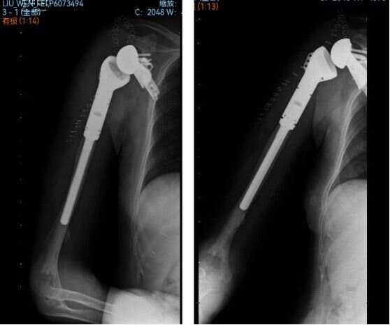 經(jīng)過(guò)圍術(shù)期周密審慎的安排與準(zhǔn)備,近日由劉建湘教授主刀,團(tuán)隊(duì)密切配合、精細(xì)操作為患者順利實(shí)施手術(shù),依次完成了腫瘤的完整切除、肱骨及肩胛骨精準(zhǔn)截骨,人工假體安裝與組配,歷時(shí)2小時(shí)圓滿結(jié)束。