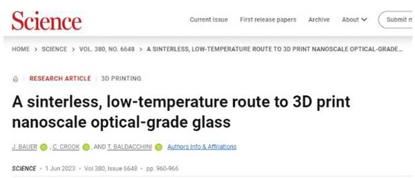 Science文章!3D打印低溫?zé)o燒結(jié)納米級透明玻璃技術(shù)