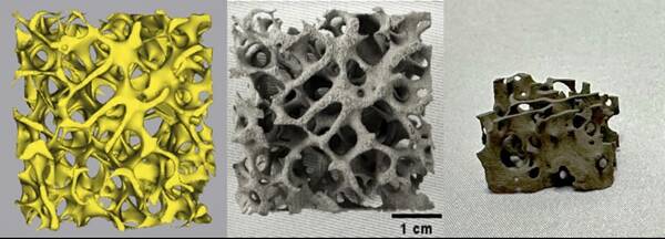 △骨骼結(jié)構(gòu)的高分辨率 CT 掃描,STL 文件(左),燒結(jié)部件 UniFuse TM  (中),素坯部件 BJT L25- 脫粉后結(jié)構(gòu)不完整(右)