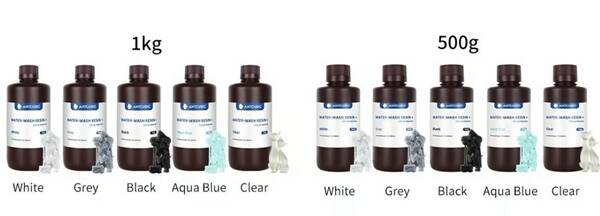 水洗樹脂通常比同一樹脂制造商生產(chǎn)的標(biāo)準(zhǔn)樹脂略貴。此外,可水洗樹脂的顏色通常與標(biāo)準(zhǔn)樹脂不同,有時(shí)甚至更少。例如,Sunlu 的標(biāo)準(zhǔn)樹脂價(jià)格約為每公斤 27 美元,有八種顏色可供選擇;可水洗樹脂售價(jià)約 31 美元,而且只有 5 種顏色可供選擇。還有 Anycubic 的產(chǎn)品,他們的標(biāo)準(zhǔn)樹脂售價(jià)約為 20 美元,有七種顏色可供選擇,而他們的水洗樹脂售價(jià)為 34 美元,只有六種顏色可供選擇。