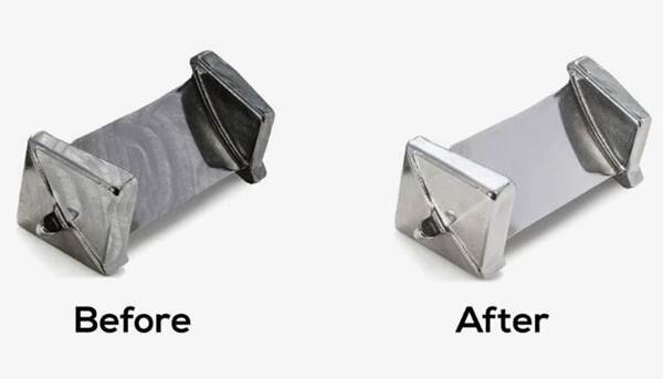 △經(jīng)過振動(dòng)精拋光的金屬零件前后對比(來源:Acton Finishing