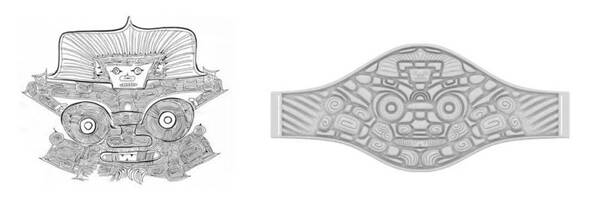 神人獸面紋和腰封預(yù)期的效果“腰封平面圖案的靈感來源于良渚古老而神秘的神人獸面紋,要讓平面圖案具有立體浮雕的藝術(shù)效果,只能靠3D打印。” 吳海燕說,團(tuán)隊(duì)傾注了大量心血在腰封的創(chuàng)作上。