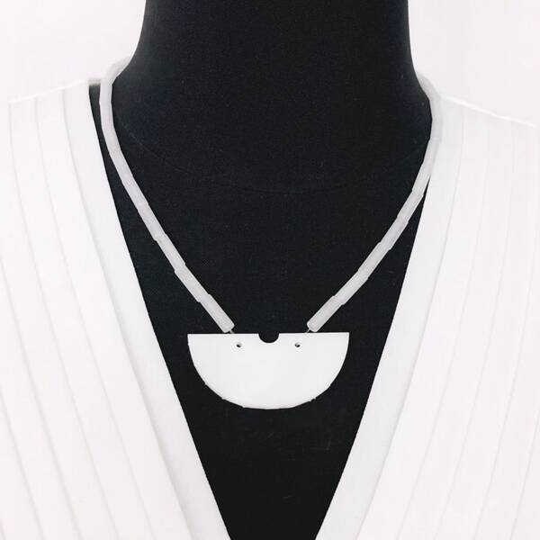 此外,和采火服飾搭配的掛件同樣經(jīng)歷了“曲折”的創(chuàng)作過程。吳海燕介紹到,掛件的靈感源于良渚的玉璜,設(shè)計(jì)玉璜尺寸須鎖定人體與服裝在V領(lǐng)間的空間大小才能精準(zhǔn)造型,在嘗試3D打印造型后,設(shè)計(jì)團(tuán)隊(duì)進(jìn)一步精準(zhǔn)確定掛件的形狀與結(jié)構(gòu),并決定采用光澤度和手感更好的玉石材料。