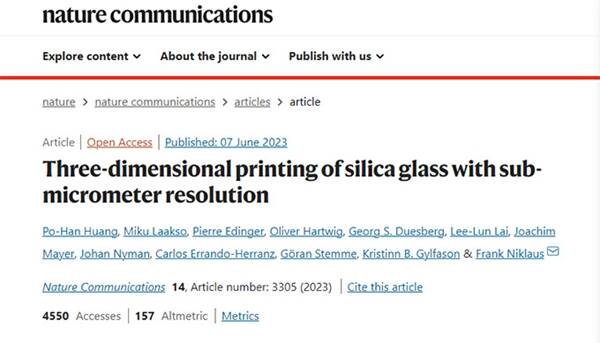 △相關(guān)研究成果已發(fā)表在《自然通訊》雜志上,題目為“亞微米分辨率下的3D打印二氧化硅玻璃”(傳送門)