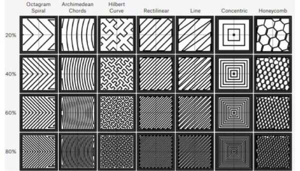 除了填充密度之外,圖案的選擇也會(huì)影響打印部件的特性。不同的切片程序提供各種圖案,從簡(jiǎn)單的線條到復(fù)雜的幾何形狀。每種圖案都有自己的特點(diǎn),影響強(qiáng)度、打印時(shí)間、重量負(fù)載和靈活性。