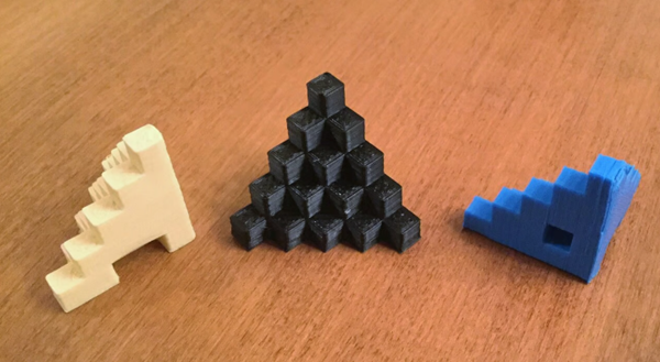 這個校準(zhǔn)打印品由許多 5 毫米的立方體組成,以階梯狀排列在四分之一金字塔的側(cè)面。不過,如果設(shè)計(jì)中只有 5 毫米的立方體,那就沒有什么測試意義了;該模型還包含作為橋接測試的間隙。