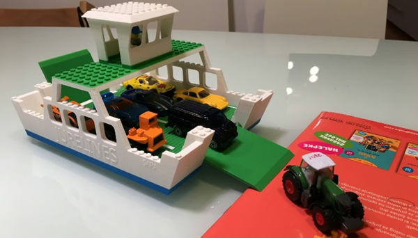 這個印刷的小渡輪真的可以漂??!用它來運送您的樂高車輛穿過浴缸或游泳池。坡道有一個工作機制,允許在停靠時進行裝卸操作。
