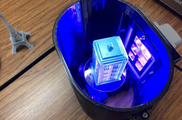 另一種常見的方法之一是自制固化箱。您只需要一個帶蓋的盒子或盆子、一些鋁箔和一盞紫外線燈(波長與您使用的樹脂相同)。有些套件還包括一個太陽能轉(zhuǎn)盤,這將大大減少固化打印件所需的時間和精力。