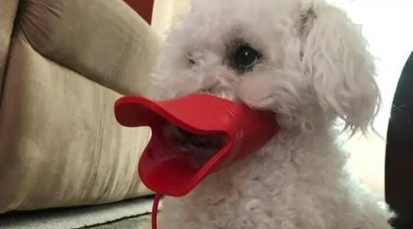 這種替代口罩的形狀像鴨嘴,可以防止狗狗吃或咬任何不該吃的東西,但它的外觀不像普通口罩那么可怕或具有威脅性。