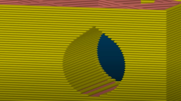 淚滴形孔可讓您打印水平孔而不會下垂(來源:Maker's Muse via YouTube)