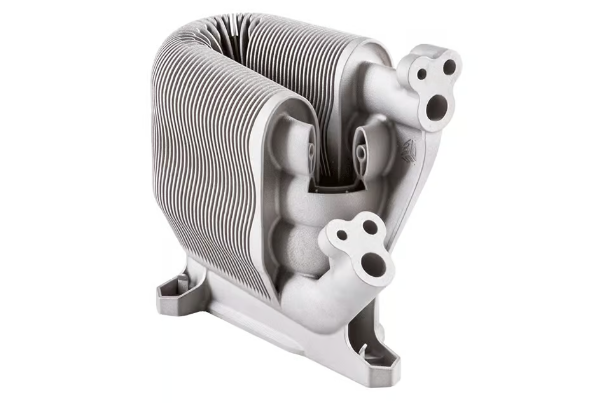 康明斯工程師轉(zhuǎn)而采用逆向工程和金屬3D打印技術(shù),使用3D Systems公司的激光粉末床熔融3D打印機(jī)。新水泵(如下圖)采用316-L不銹鋼材料,僅用三天時(shí)間就完成了3D打印,整個(gè)過程用時(shí)5周,而不是10周。外殼與水泵的其他部件完美匹配,在賽車的六場比賽中發(fā)揮了煥然一新的性能。