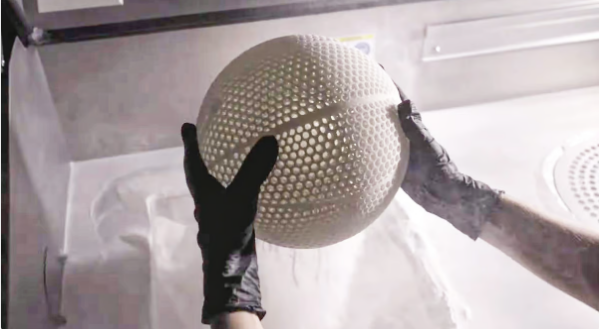 最近,威爾遜體育用品公司(Wilson Sporting Goods)在2023年NBA扣籃大賽上首次亮相的3D無(wú)氣原型籃球就是一個(gè)SLS打印部件。該原型籃球展示了該技術(shù)一體打印部件和柔性材料的能力,未來(lái)可能會(huì)出現(xiàn)在體育用品商店的貨架上。