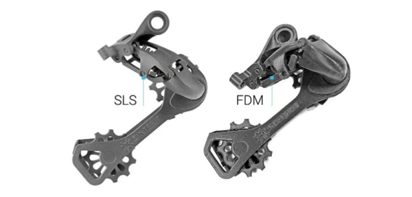 使用SLS技術(shù)(左)和使用長(zhǎng)絲的FDM技術(shù)將功能性自行車零件打印為一件(來(lái)源:Sinterit)