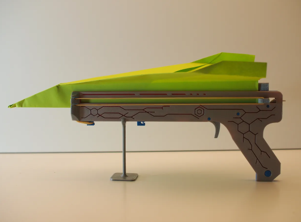該發(fā)射器具有易于組裝和簡單的手槍式設計,可直接3D打印和組裝,適用于基本上任何類型的紙飛機,并且只需要三個橡皮筋即可正常工作。