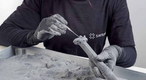 手動對SLS 3D打印部件進行除粉的(來源:Sinterit)