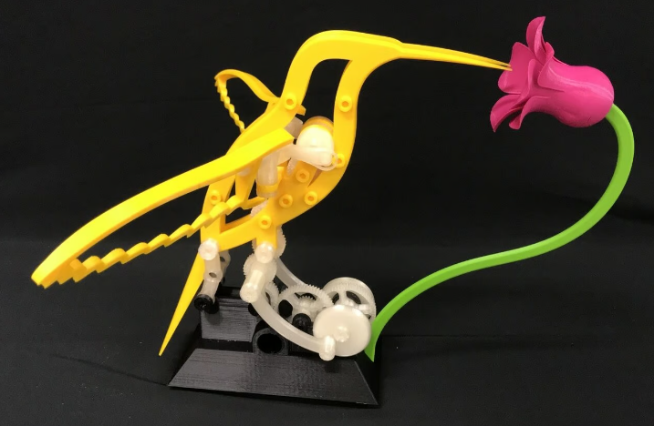 3D打印為更多的創(chuàng)造可能性打開(kāi)了大門,而機(jī)器人無(wú)疑是最受歡迎、最令人印象深刻的選擇之一。這個(gè)蜂鳥(niǎo)自動(dòng)機(jī)會(huì)移動(dòng)翅膀并前后擺動(dòng),同時(shí)品嘗一朵甜美的花朵。