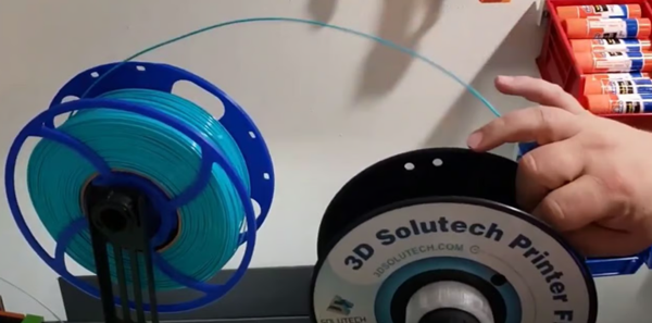 您可以使用鉆頭或用手將線材從一個線軸旋轉(zhuǎn)到另一個線軸(來源:Makers Mashup via YouTube)