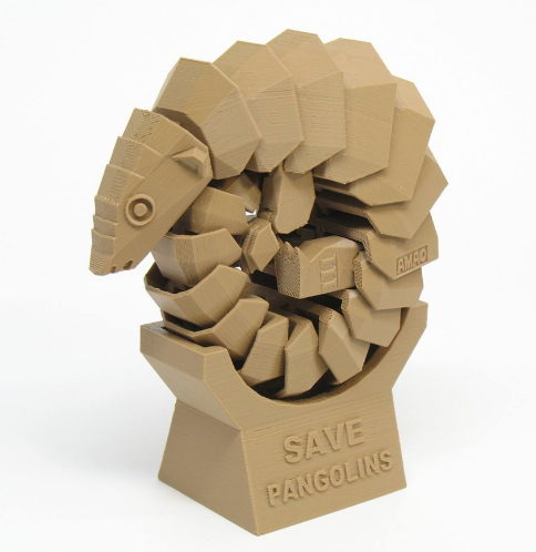 穿山甲的3D打印模型,為了打印方便,設(shè)計(jì)師甚至將模型分成多個(gè)部分,并且無需螺絲或粘合劑即可全部組裝。