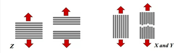 通常,打印在所有軸上的強度并不相同(來源:Sculpteo)