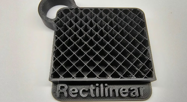 直線(之字形)圖案與網(wǎng)格圖案類似,但僅在給定層上沿一個方向打印線條,將打印方向翻轉(zhuǎn)90°以打印下一層。它是打印最快的填充圖案之一,使其成為流行的選擇。