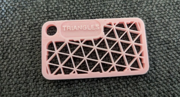 三角形圖案是六次測試中出現(xiàn)的三個競爭者中的最后一個。在三項拉伸研究中,三角形圖案的性能存在很大差異。雖然CNC Kitchen發(fā)現(xiàn)這種模式最強,但Lalegani等人進行的測試。與網(wǎng)格等其他填充圖案相比,The Machine Bros Solutions的強度較低。這表明三角形可能是防止剪切力的良好填充物。