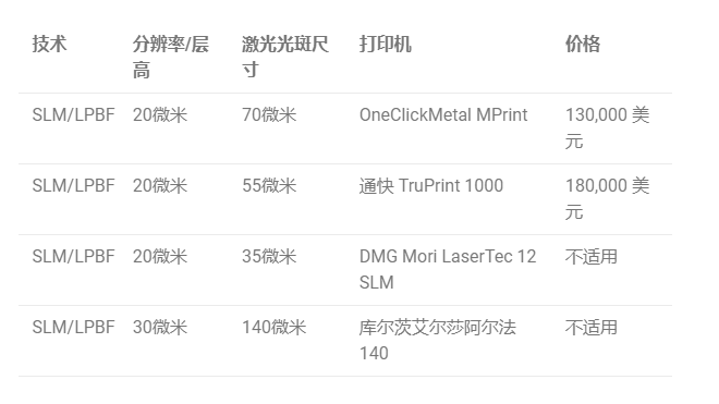 高分辨率3D打印機(五):最高分辨率金屬3D打印機