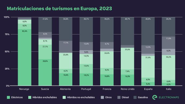 該圖顯示了歐洲不同國家的電動汽車百分比(圖片來源:Electromaps)