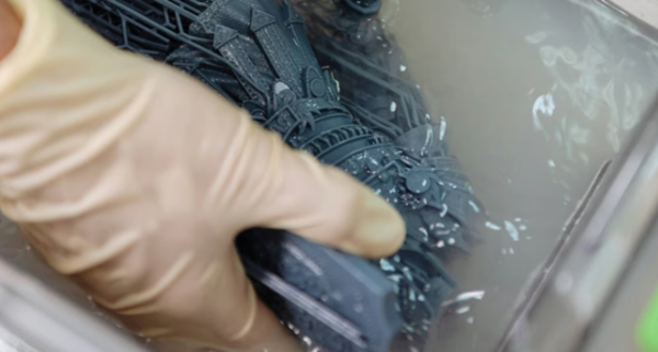 下一步是清洗。這意味著要清潔打印件以去除表面或內(nèi)部腔體中任何未固化的(液體)樹脂,根據(jù)樹脂的類型,需要考慮不同的因素。通常使用異丙醇(IPA)進行清洗,但三丙二醇單甲醚(TPM)正作為一種更安全的替代品而越來越受歡迎。無論您將打印件浸入溶劑浴中、使用噴霧瓶還是專用清洗站,目標(biāo)都是去除未固化的樹脂。清洗可防止表面粘性并改善打印件的機械性能。